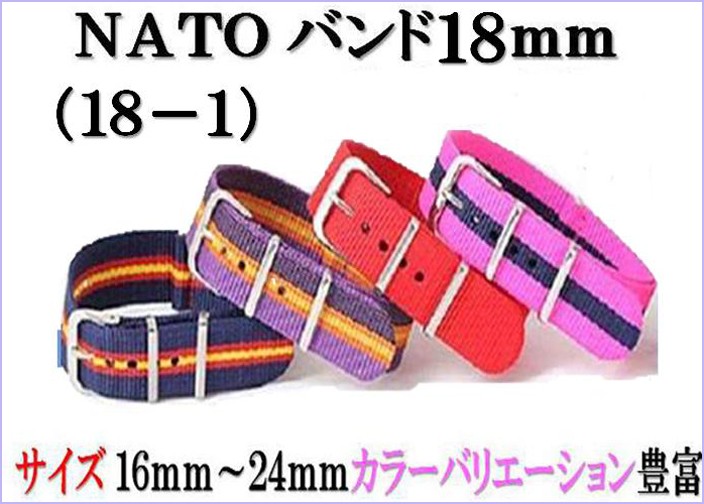 時計ベルト NATOバンド ナイロンストラップ ミリタリーベルト TAIMX CASIO KNOTOなど全39色 替えバンド 18mm_1