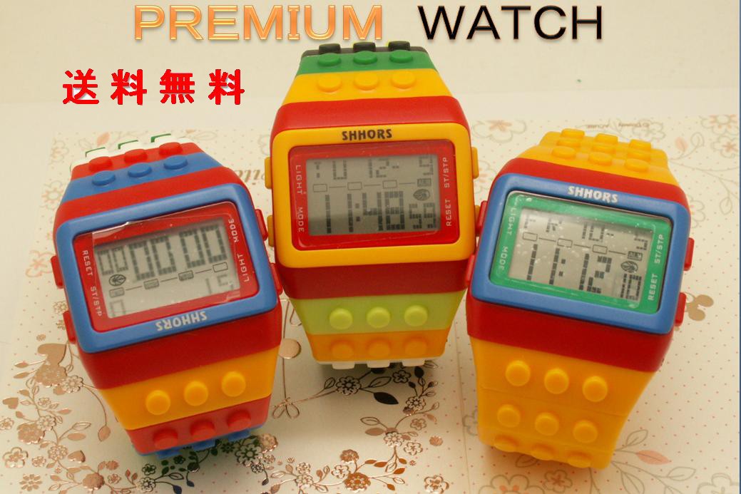 メンズ時計 レディズ時計 腕時計 LED時計 デジタルウォッチ レゴ時計 ファション時計 カラフル ボーイズ、ガールズ ブロックベルト時計No2! 送料無料!