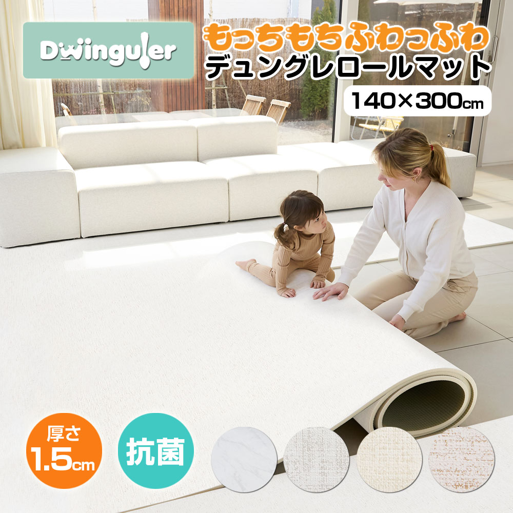 子育て応援価格 ロールマット プレイマット PVC ベビー 厚手 1.5cm 防水 もちもち 赤ちゃん おしゃれ 抗菌 クッションマット 防音 140×300 Dwinguler