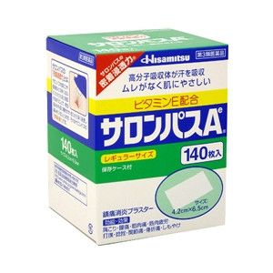 「サロンパスAe 」は、ムレがなく、肌にやさしい高分子吸収体(基剤)使用の鎮痛消炎プラスターです。ビタミンE配合。肩こり、腰痛、筋肉痛、筋肉疲労、打撲、ねんざ、関節痛、骨折痛、しもやけに。医薬品。