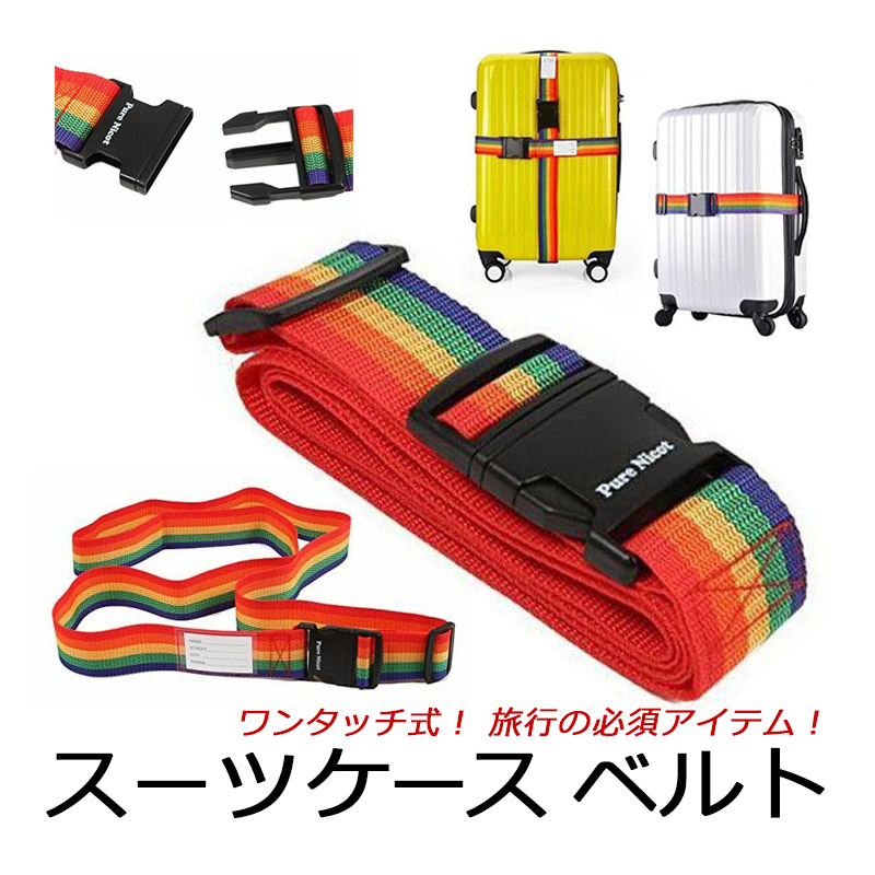 スーツケースベルト ワンタッチ式 旅行 必須 アイテム 旅行用品 旅行便利グッズ 荷物が見つけやすい レインボー ポイント 爆買