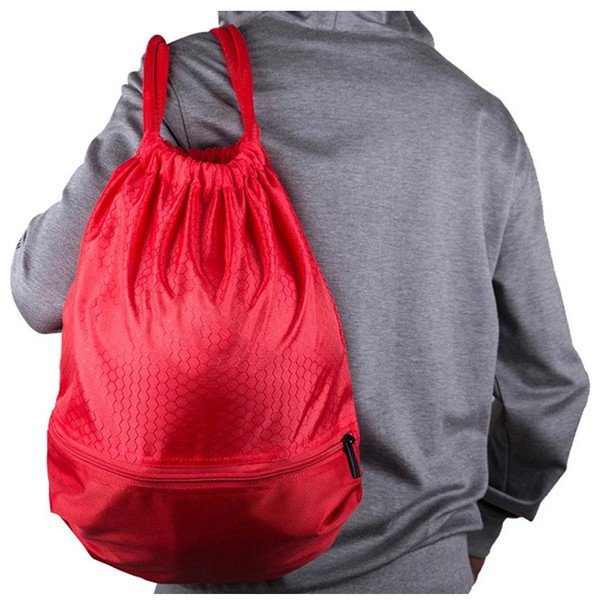 ・バッグ内側には収納ポケット付きで、携帯電話や小物収納などにも大変便利です。外側にもファスナー付きポケットがあり、収納力アップで多機能仕様のジムサックです。