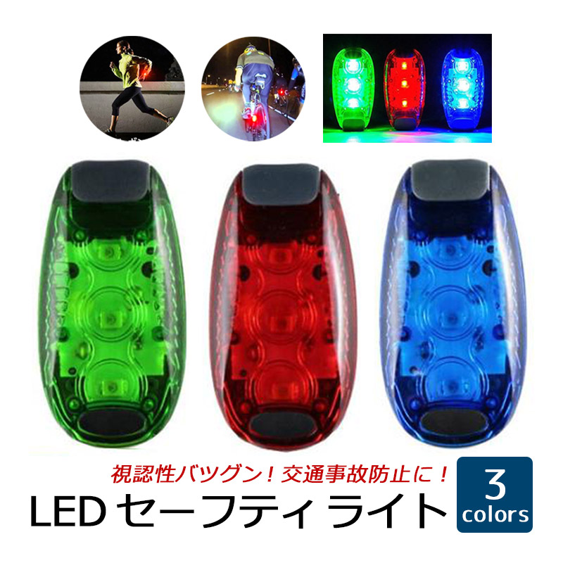セーフティーライト LED 3個搭載 クリップ型 ランニングライト ストロボ発光 3パターン 日本語説明書付き 爆買
