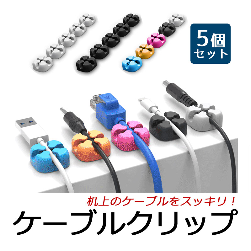 ケーブルクリップ ケーブルホルダ USB 充電ケーブル コード 固定 整理 落下防止 5個セット オフィス デスク 車内 ポイント 爆買