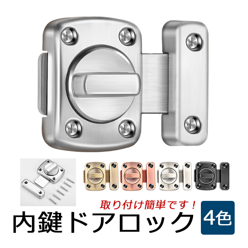 内鍵 後付け ドアロック 回転 回転式 かぎ 補助鍵 鍵 安全ロック 防犯 ストッパー 簡易 工事不要 簡単取付 ポイント 爆買
