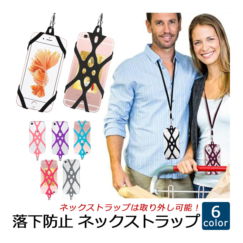 スマホケース ショルダーストラップ 落下防止 ネックストラップ シリコン製 4.5-6.5インチ iPhone Android 各機種対応 ポイント利用