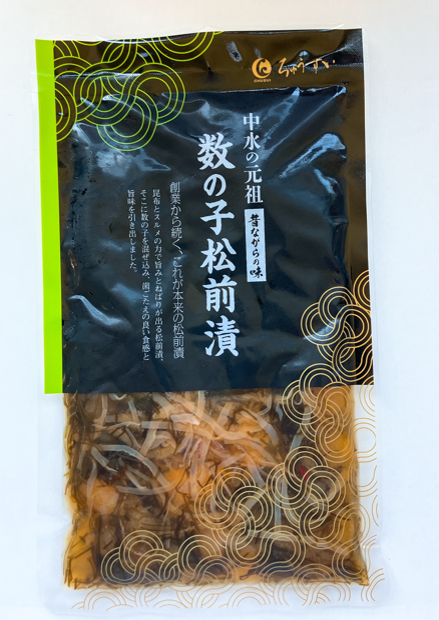 北海道道南地方の郷土料理の松前漬、うま味たっぷり真昆布とガゴメ昆布とするめいかをふんだんに使った松前漬です。歯ざわりのよい数の子が特徴で昆布の粘りとするめいかのうま味がギュッと詰まったひとしなです。240g大容量のお得パックです。