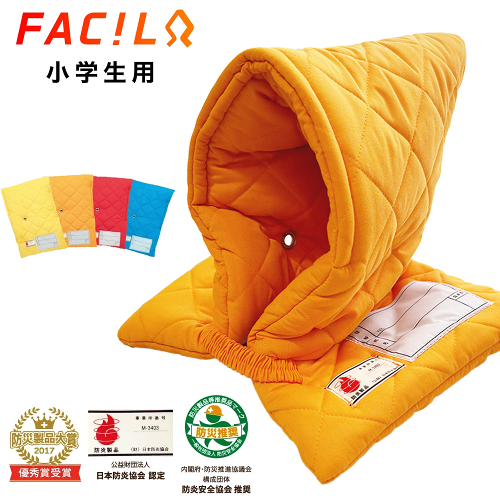 ファシル 防災頭巾 小学生用 プレミアム 子供 キッズ 小学校 難燃 名札 洗濯機丸洗OK 衝撃吸収 防炎 日本防炎協会認定商品 レッド ブルー イエロー オレンジ