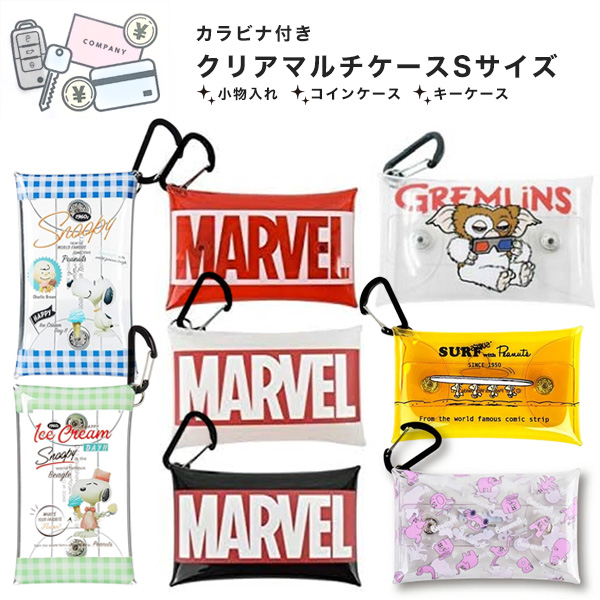 クリアマルチケース Sサイズ カラビナ付き 小物入れ キーケース コインケース 小銭入れ マーベル スヌーピー グレムリン バーバパパ ミニオン