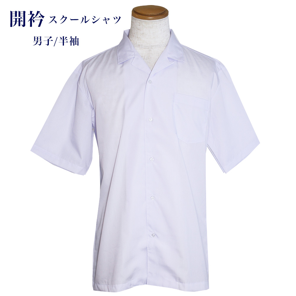 男子 半袖スクールシャツ 開衿 開襟 ハマカラー 学生 男児 メンズ 制服 小学生 中学生 高校生 ワイシャツ KJM233