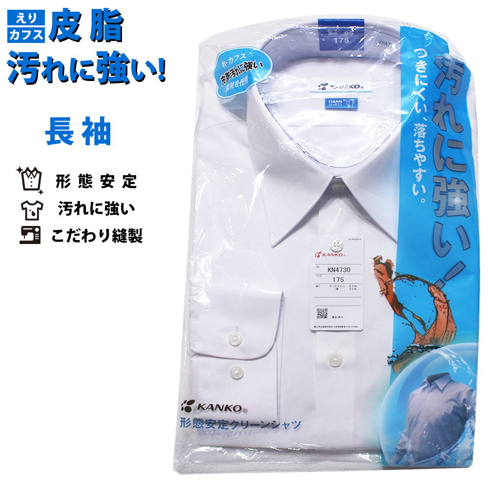 KANKO 男子長袖スクールシャツ 汚れに強い 形態安定 防汚 クリーンシャツ 角襟 学生 中学生 高校生 通学 ワイシャツ 男性 メンズ カンコー KN4730
