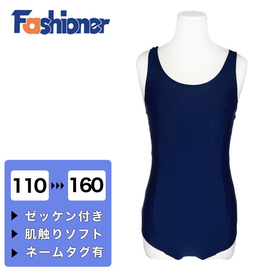 【SALE!】スクール水着 ワンピース 紺 ネイビー プール 水泳 海水浴 女の子 ジュニア 子供 子ども キッズ 競泳用 体育 Fashioner ファッショナー N-740-2601