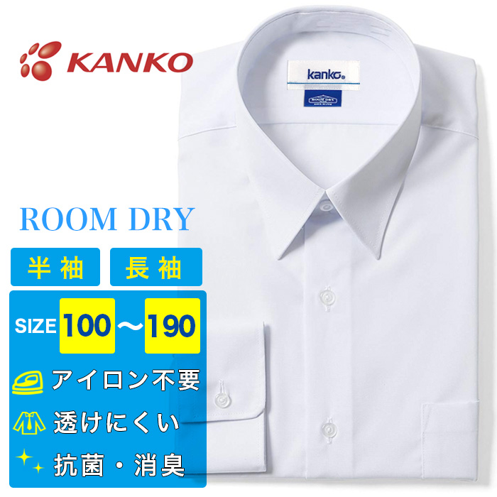 男子 スクールシャツ A体 半袖 長袖 カンコー ルームドライ 速乾 抗菌 消臭 形態安定 透け防止 防透 UVカット ノーアイロン メンズ ワイシャツ ROOMDRY KANKO