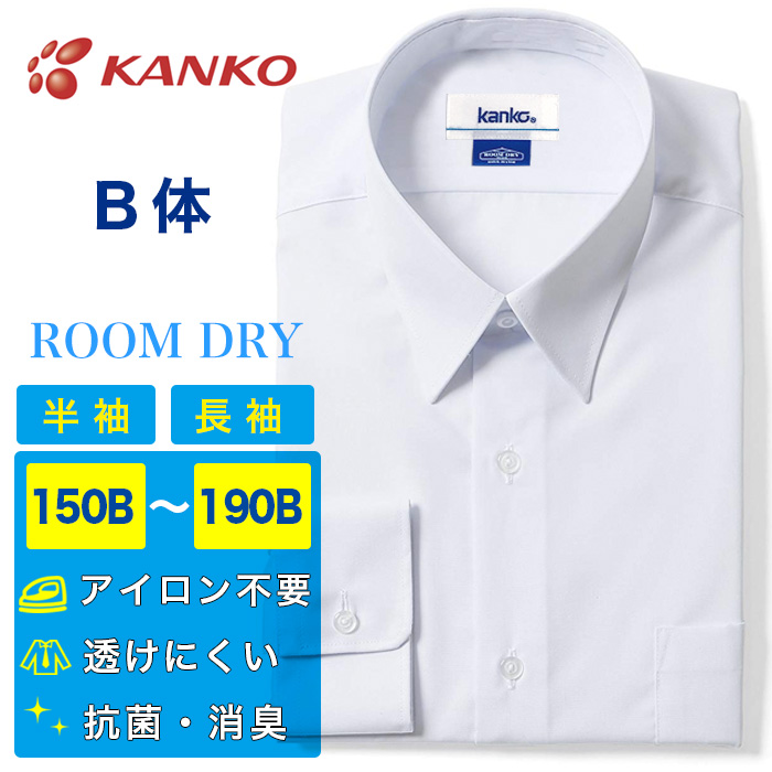 男子 スクールシャツ B体 半袖 長袖 カンコー ルームドライ 速乾 抗菌消臭 形態安定 防透 UVカット ノーアイロン メンズ 大きいサイズ対応 ワイシャツ ROOMDRY