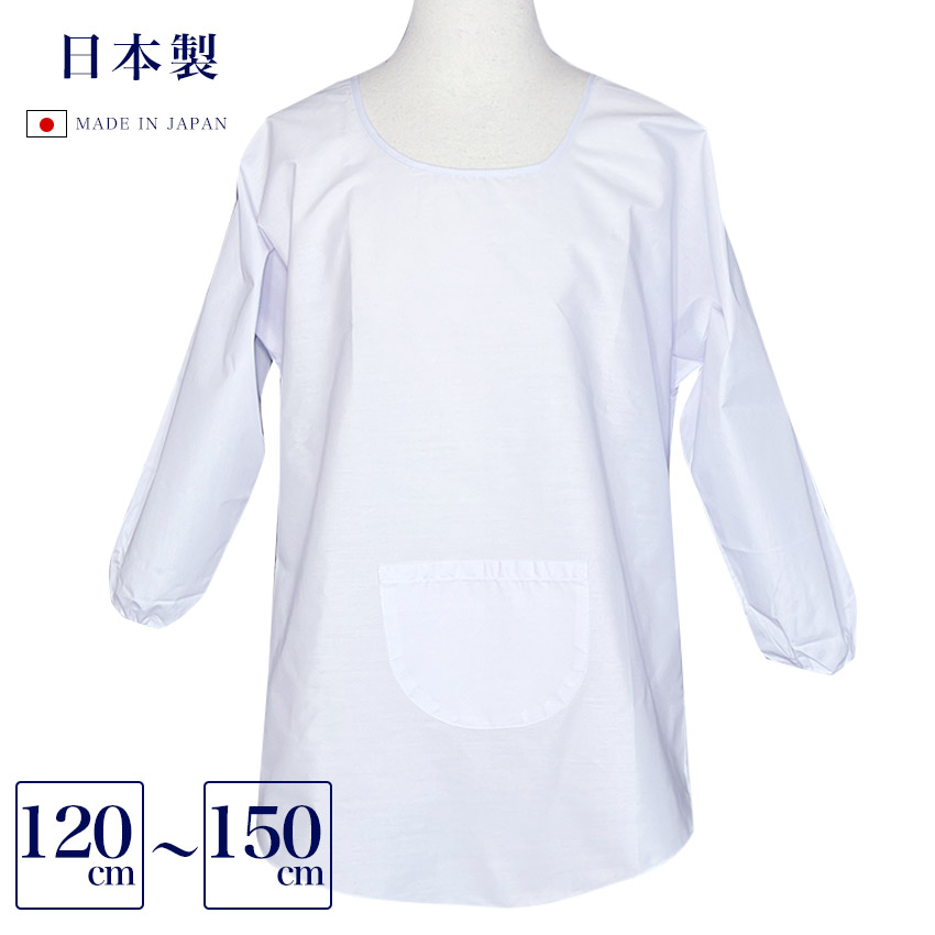 給食割烹着 120~150cm 日本製 ラグラン袖 子供 キッズ 小学校 中学校 調理 家庭科 授業