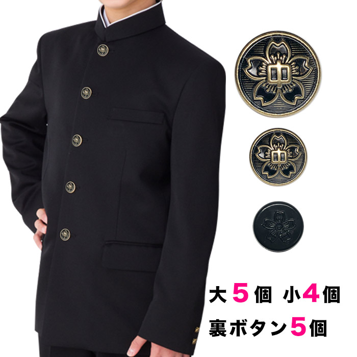 桜ボタンセット大5個小4個裏ボタン5個セット 詰襟 学ラン 釦 ぼたん 上衣 上着 ジャケット 学生服 制服 中学校 高校 金 ゴールド セット販売