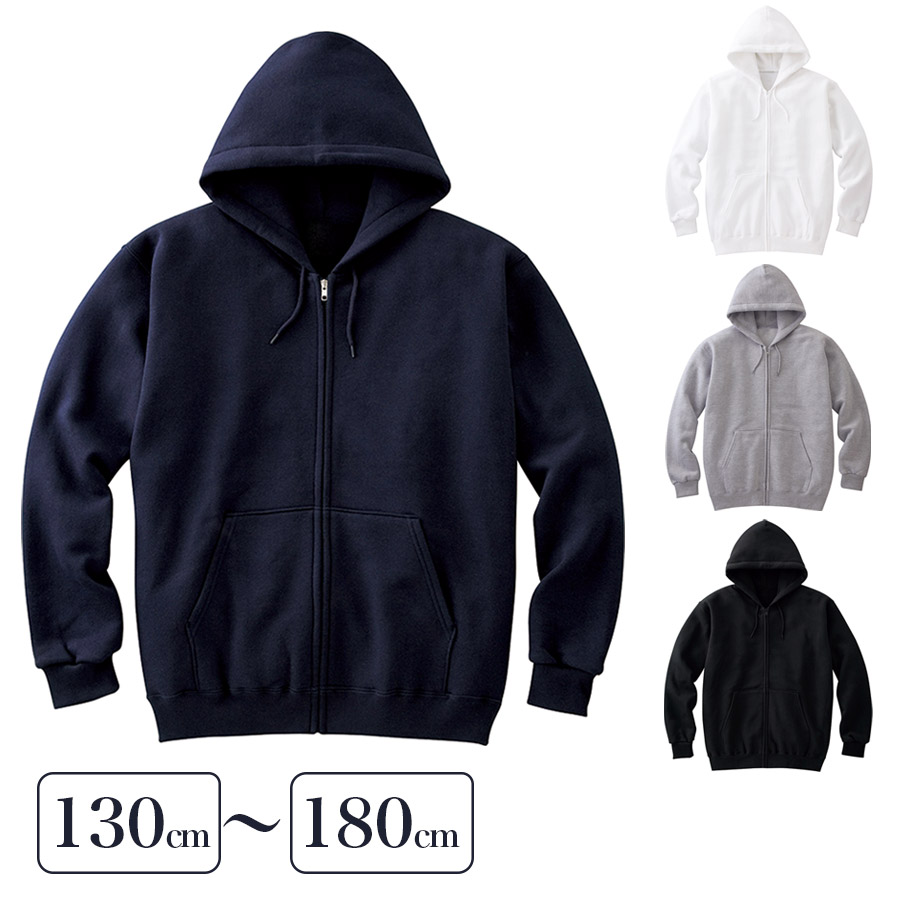 【在庫限り】ジップアップスクールパーカー ライトタイプ 前開き 裏毛 パイル地 フーディー スウェット トレーナー 男女兼用 制服 白 紺 黒 グレー