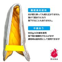 | 素材 | 表 シルバー ポリエステル100%(難燃アルミコーティング) 中綿 ポリエステル100%(エステル難燃綿50%エステル綿50%) 裏 イエロー 難燃ポリエステル100% |