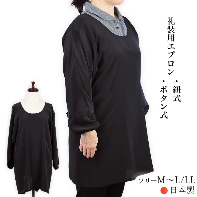 エプロン黒 礼装対応 割烹着 フォーマル フリーML/LL 冠婚葬祭 日本製
