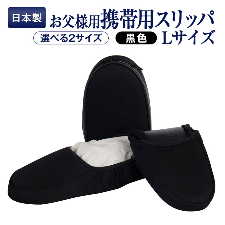 お父様用Lサイズ 25.5-26.5cm 26.5-27.5cm お受験 スリッパ 日本製 かかと付き 携帯用スリッパ ケース付き ブラック 黒 メンズ