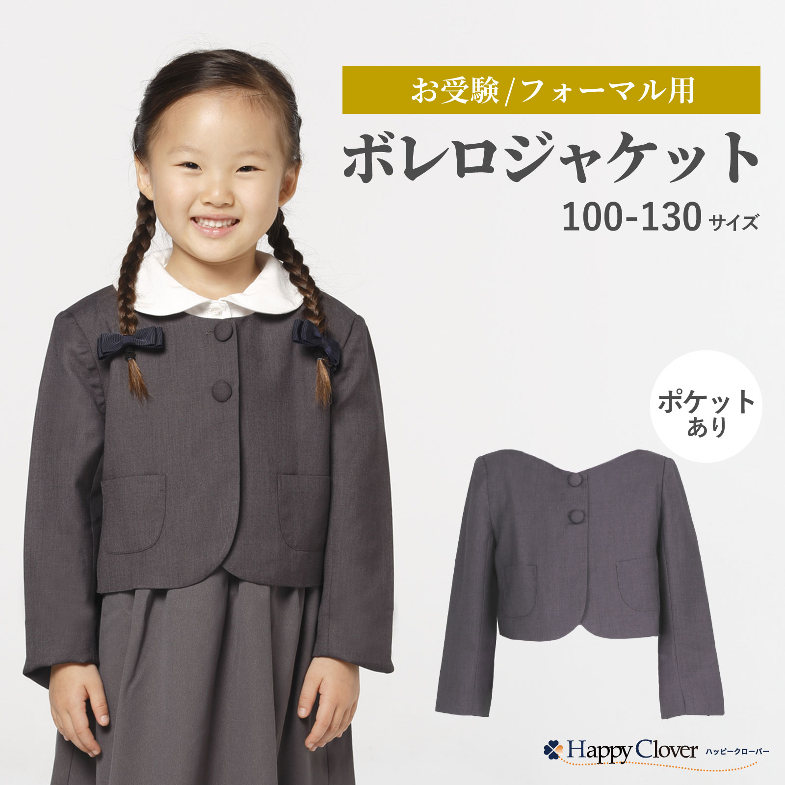 | お受験用ボレロジャケット! 首周りはブラウスとの相性が良い優しいラウンドカット。 |