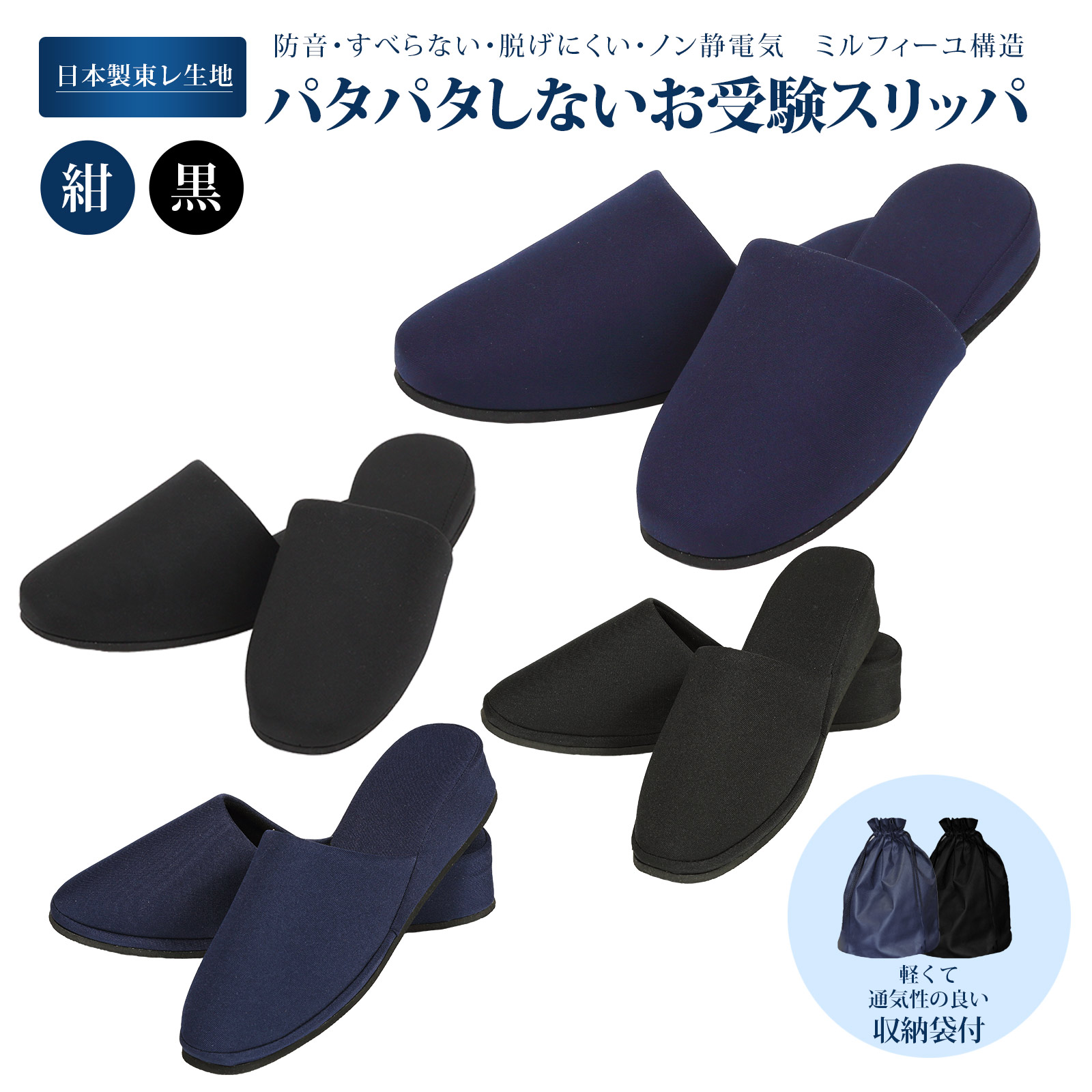 | お受験を控えたお客様が一番気にする5つのお悩み Q.受験会場や説明会で ”パタパタ音がしたらどうしよう……” A.大丈夫です。消音ラバーソールでお受験ママとパパが一番気にする ”パタパタする音”がしません。 Q.人前で絶対に”すべったり”したくありません。縁起の意味でも。 A.大丈夫です。同じく、ラバーソールなのですべらない裏になっています。 Q.大事な面接で、静電気でホコリがつかないか心配 A.大丈夫です。日本製 東レ〓の半永久的に制電する生地を使っていますので、ホコリがつきません。 Q.複数校受験なので、説明会、模擬面接、面接本番まで最後まで新品に見えるスリッパを探しています。 A.大丈夫です。同じくボリュームのあるユニフォームにも使われる生地ですので海外製のものとの違いを実感していただけます。 厳選した素材を使っておりますので、型崩れしにくいスリッパとなっております。 Q.脱げにくくないスリッパを探しています A.内側にソフトウレタンを使用していますので、足の甲をキャッチし脱げにくい構造になっています。さらに足あたりもとても良くなっています。 ミルフィーユ構造スリッパの特徴 【スタンダードスリッパ】 上から 1層目 もっちりとした高反発ウレタンで足あたりふんわり(高反発ウレタンは沈み込んだらそのままの低反発と違い、元の状態に復帰するのが特長です) 2層目 倍の厚さの高反発ウレタンをさらに使用 3層目 ソフト樹脂使用で、クッション性が高い1,2層目の体重の足への衝撃を吸収します 【ヒールスリッパ】 上から 1層目 もっちりとした高反発ウレタンで足あたりふんわり 2層目 ソフト樹脂使用で、クッション性が高い1,2層目の体重の足への衝撃を吸収します 3層目 硬度EVAを使用 全体重を支えてくれるので、高さがあるヒールスリッパでも安定歩行ができます ヒールスリッパは背筋が伸びて、スタイル良く見えるけど歩きにくくないか?心配のお声に安心できる構造になっています。 2種類とも床に接するソールは、ゴム樹脂ラバーソール使用! ”滑らないこと” ”音がしないこと” 最大限にこだわりました。 スリッパ内側も、大事なシーンで ”脱げにくい” こちらにこだわり 足をキャッチし、包み込むウレタンフォームを使用しています。 スリッパ表生地は、日本製 東レの技術を生かした高級素材を使用 静電気を抑制し、ホコリが付きにくく汚れにくい素材 防音・すべらない・脱げにくい・ノン静電気・汚れにくい 5大要素のつまった完璧なお受験スリッパです。 |