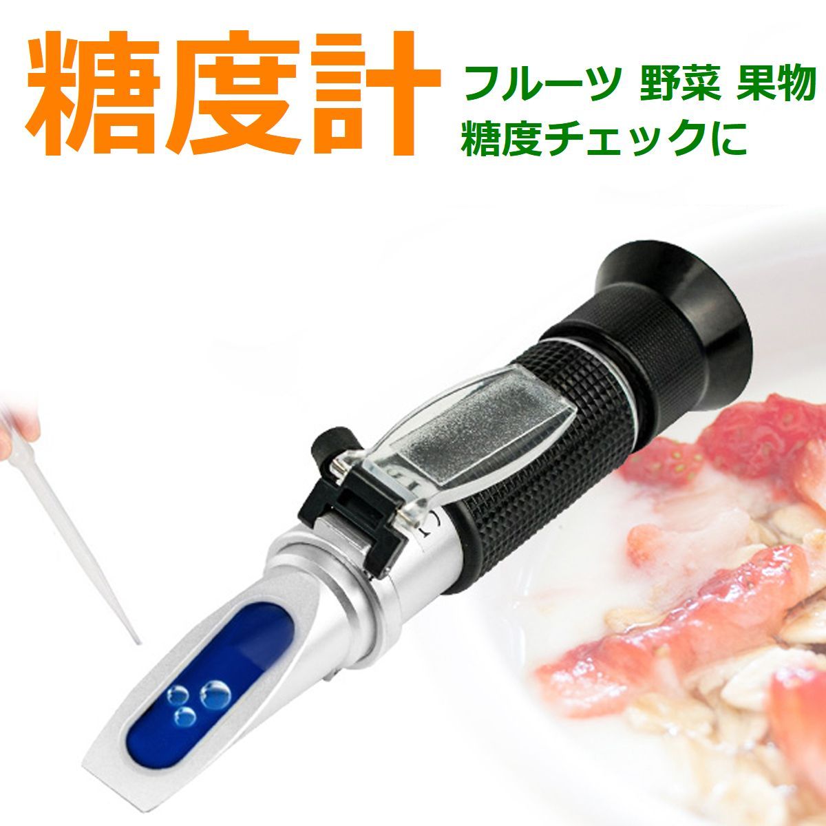 糖度計はレンズから数字を読み、果物、野菜、飲み物に0~30%の糖度を測る事ができる屈折タイプの糖度計です。