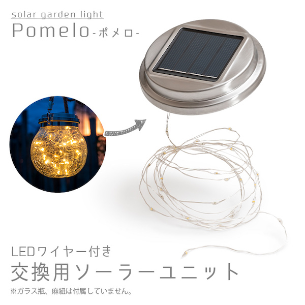 こちらの商品は「交換用ソーラーユニットのみ」となります。ガラス瓶、麻紐は付属されておりません。■スタッフ伊藤より