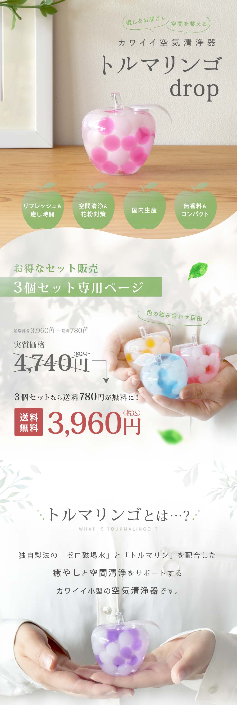 【送料無料】 インテリア雑貨 トルマリンゴ drop 3個セット | 雑貨 置物 インテリア 癒し 癒し おしゃれ プレゼント ギフト プチギフト 男性 女性 りんご