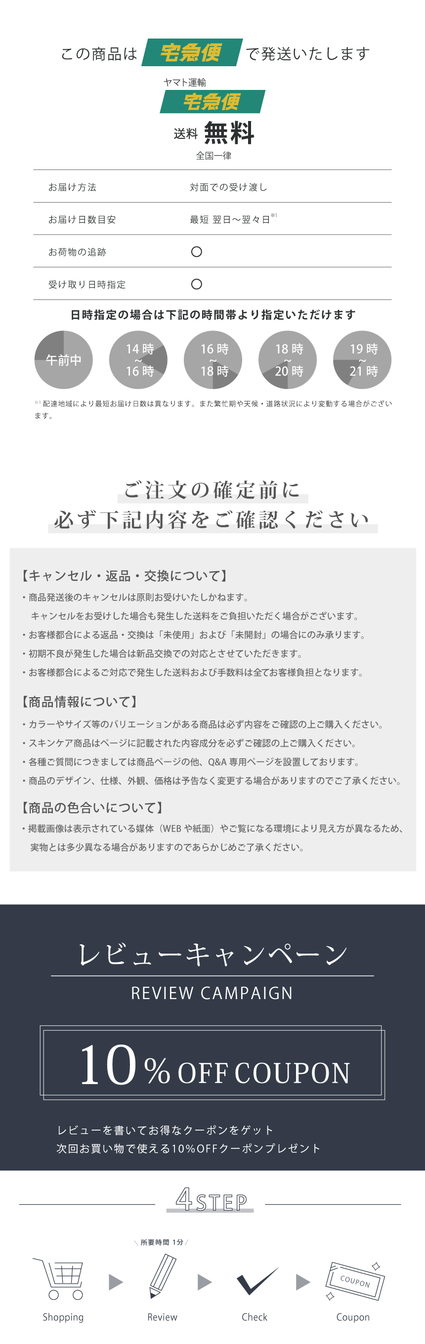 【注意書き】使い方や効果等、商品説明をよく読みご理解・ご納得いただいた上でご購入ください。商品写真は実物の色に近づけるよう徹底しておりますが、お使いのモニター設定、お部屋の照明などにより実際の商品と色味が異なる場合がございます。