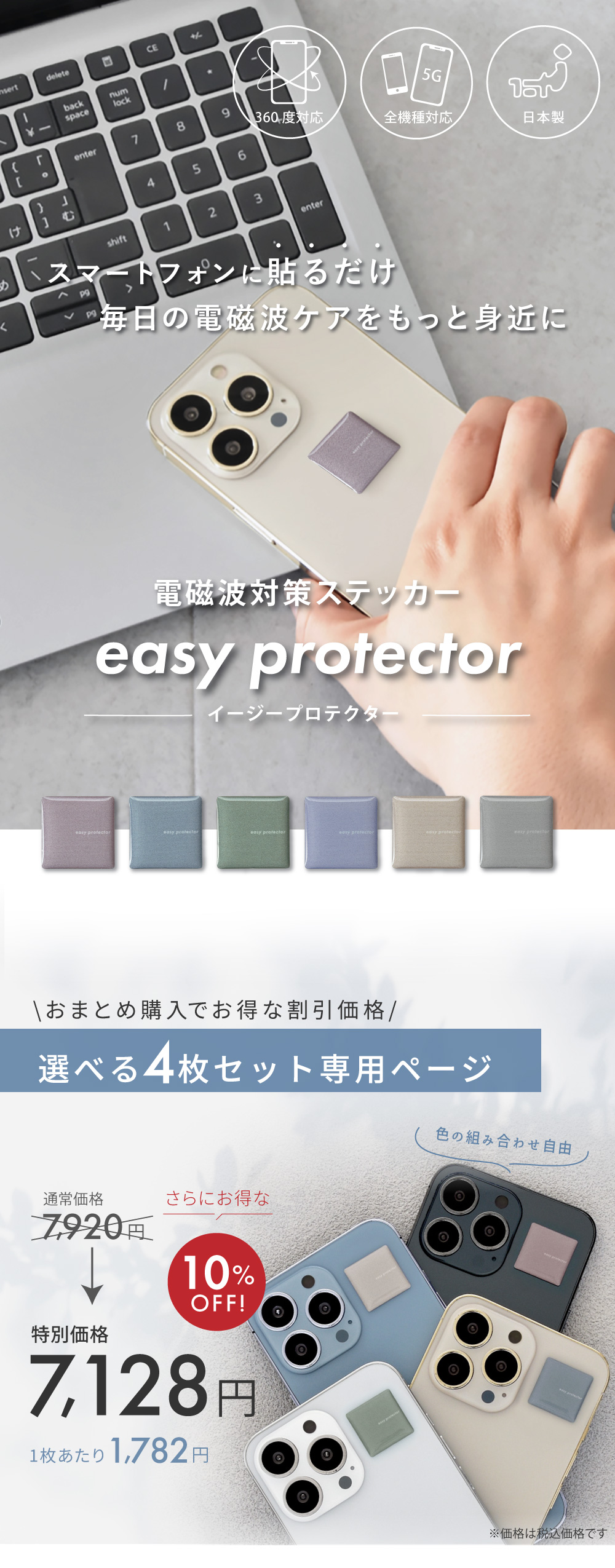【商品名】easy protector Ash Tone 選べる4枚セット 貼るだけ簡単、電磁波対策ステッカー