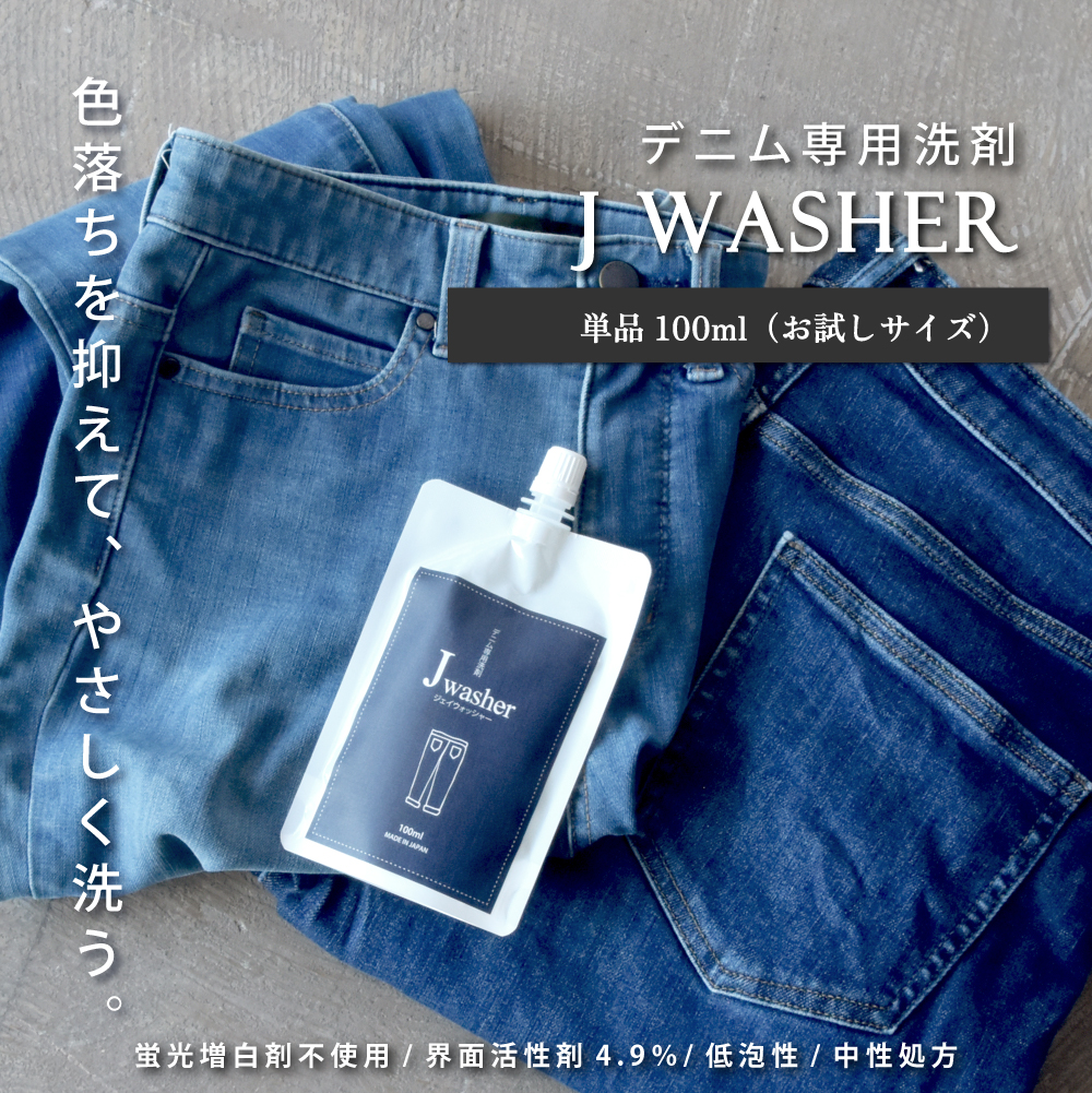 デニム用 洗剤 J-Washer 100mlパウチ | デニム ジーンズ デニムウォッシュ デニム洗い おしゃれ着 色落ちしない 色落ち 防止 衣類 1000円ポッキリ