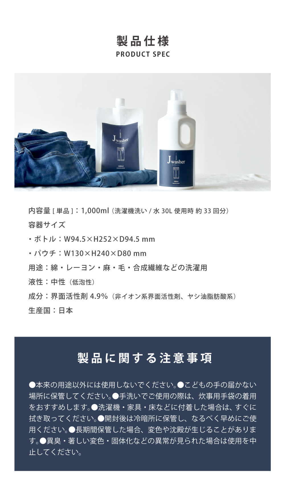 デニム用 洗剤 J-Washer 1000ml | デニム ジーンズ デニムウォッシュ デニム洗い おしゃれ着 色落ちしない 色落ち 防止 衣類 洗濯洗剤 洗濯用洗剤
