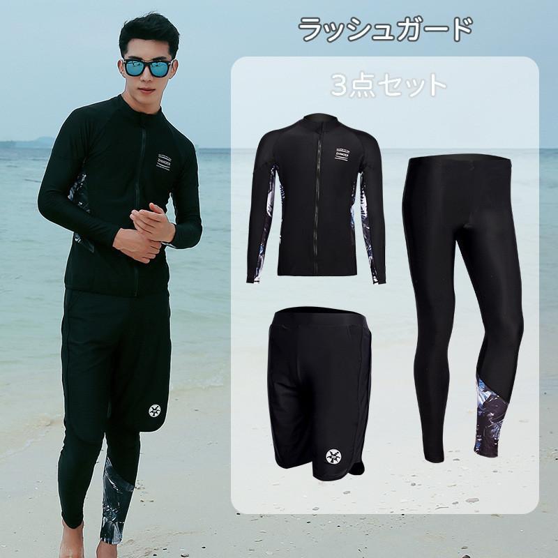 ィットネス水着 メンズ ラッシュガード 上下セット 長袖 サーフパンツ フィットネス水着 日焼け防止 スポーツ スイムウェア 海パンツ 3点セット 水泳 水陸両用