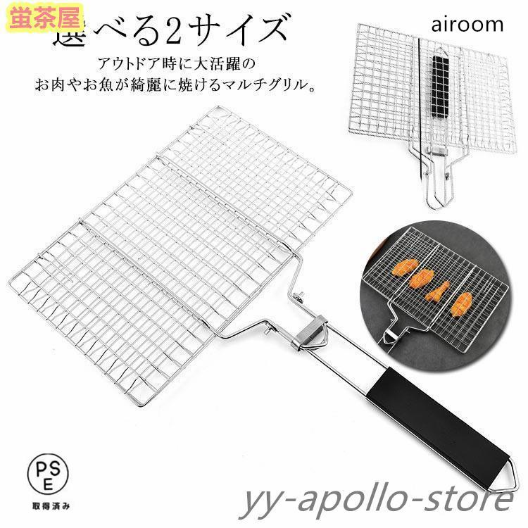 はさみ焼き網 合わせ焼き網 バーベキュー網 焼き網 魚焼き 挟み焼き 調理器具 アウトドア 食器 ステンレス 木製 持ち手 イカ焼き シーフー