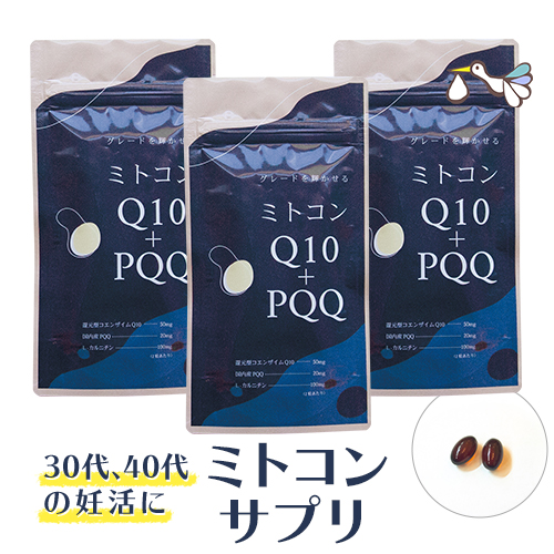 【定期購入対応】ミトコンドリア サプリ ミトコン Q10+PQQ(60カプセル)3袋セット 還元型コエンザイム サプリ ピロロキノリンキノン Lカルニチン マイトル 妊活
