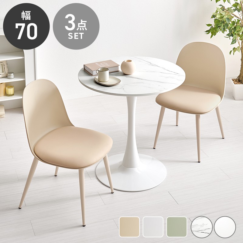 ホワイト ダイニングセット 食卓テーブルセット かわいい 緑 二人掛け グリーン ベージュ ワンルーム カフェテーブルセット 白 二人用 2人用 ダイニングテーブルセット 丸テーブル 2人掛け ニュアンスカラー 幅70×70cm