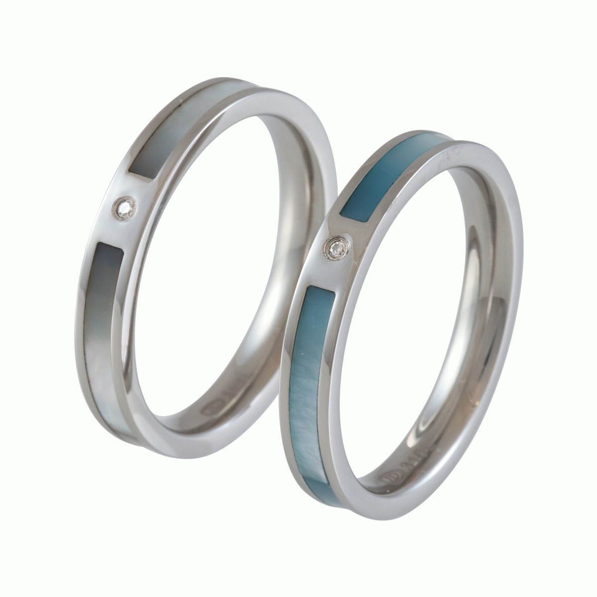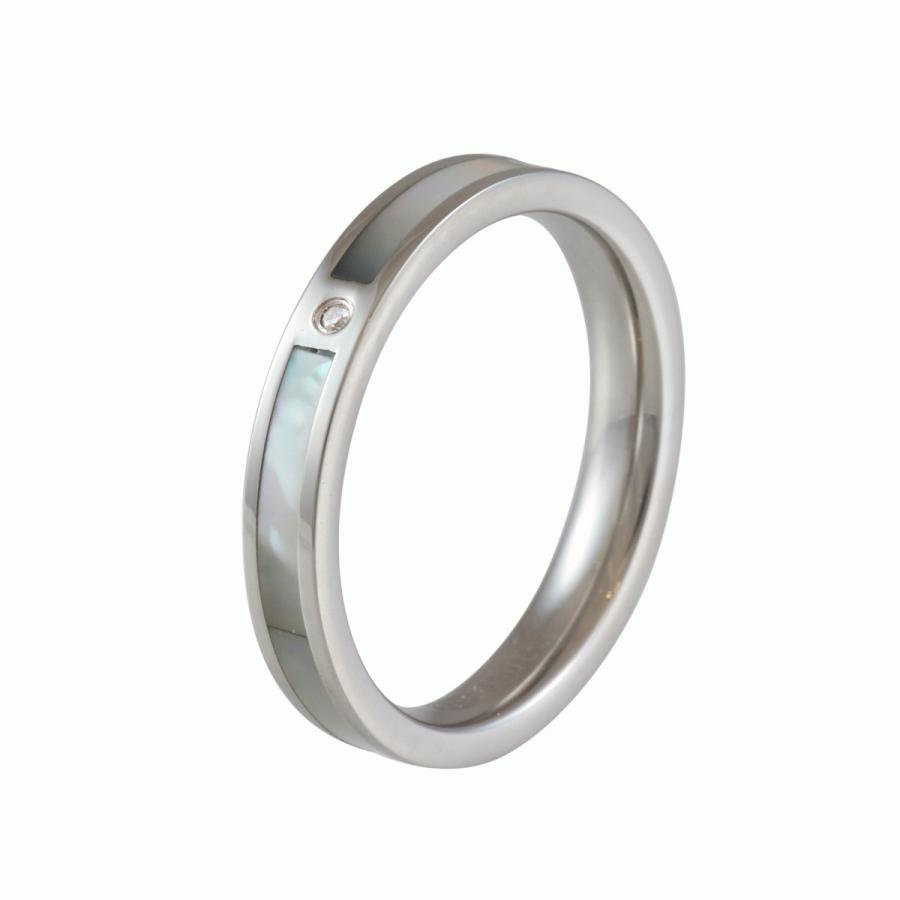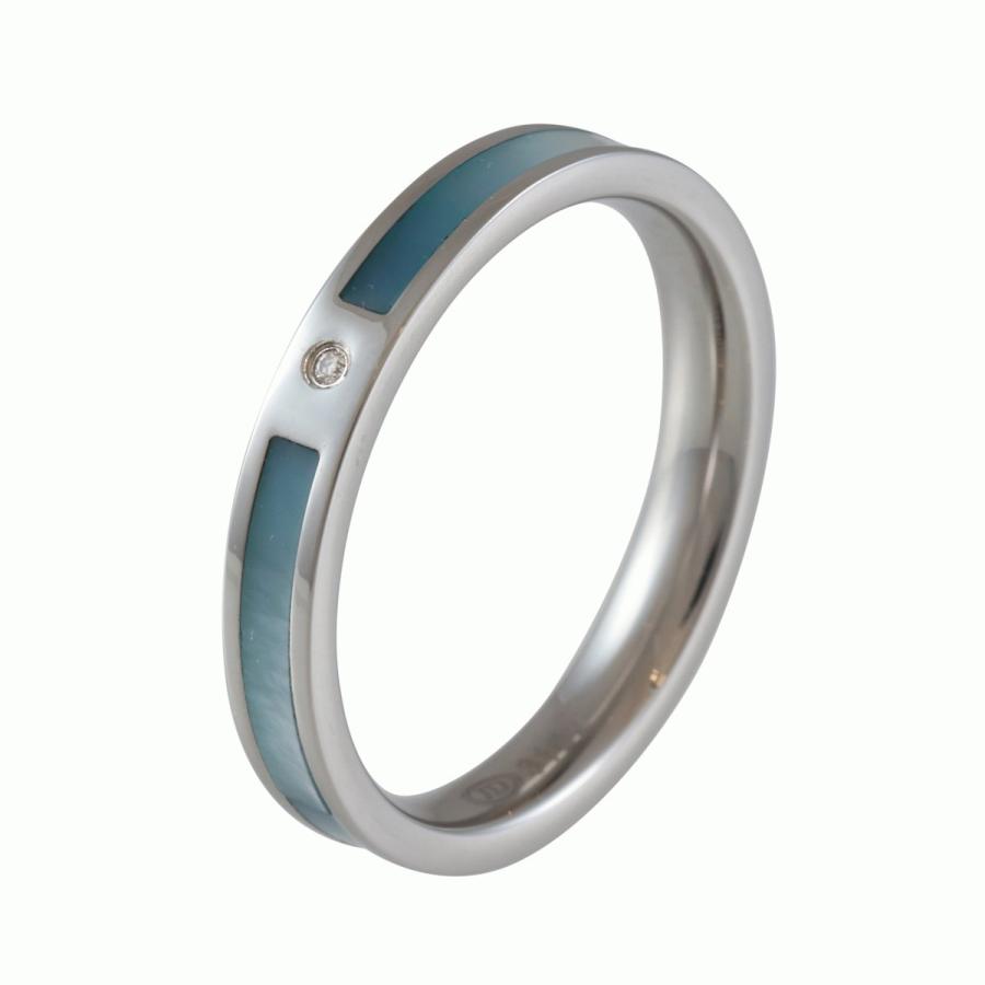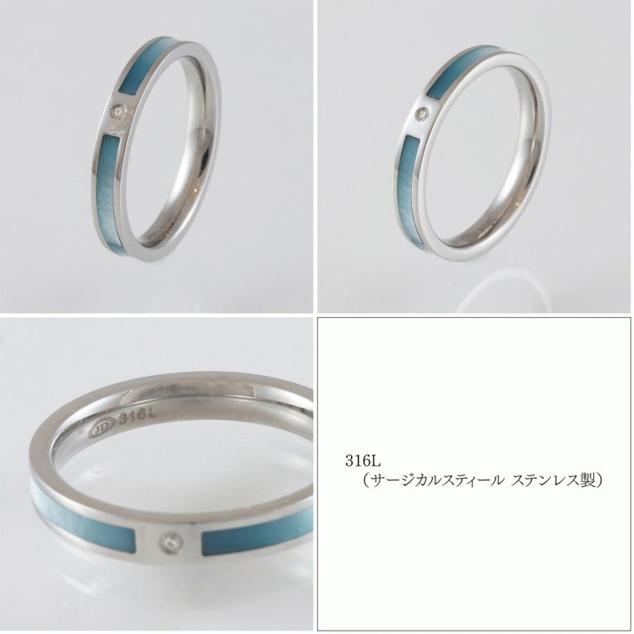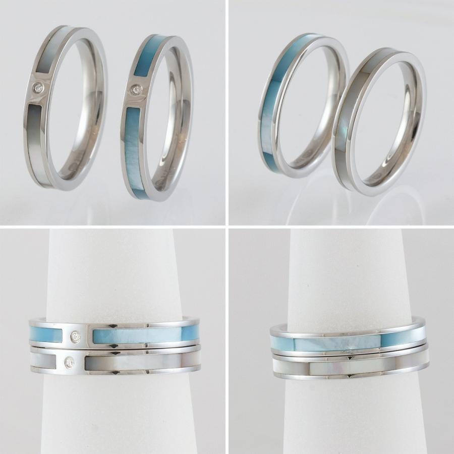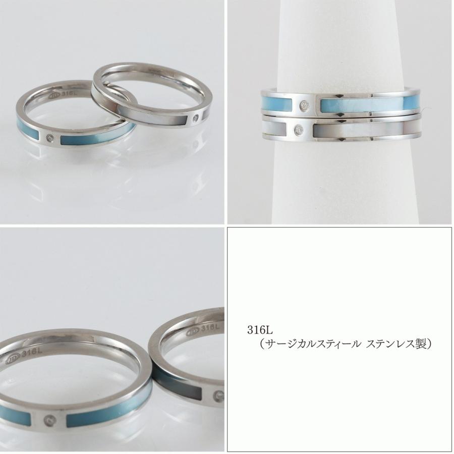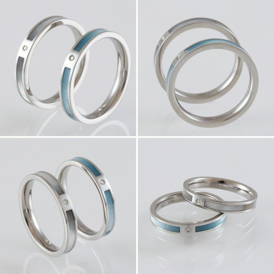 ペア リング 指輪 ステンレス スティール 天然石 ダイヤモンド シェル 2本 セット ブルー ホワイト ライン シンプル 刻印 無料 ネームリング 金属アレルギー対応