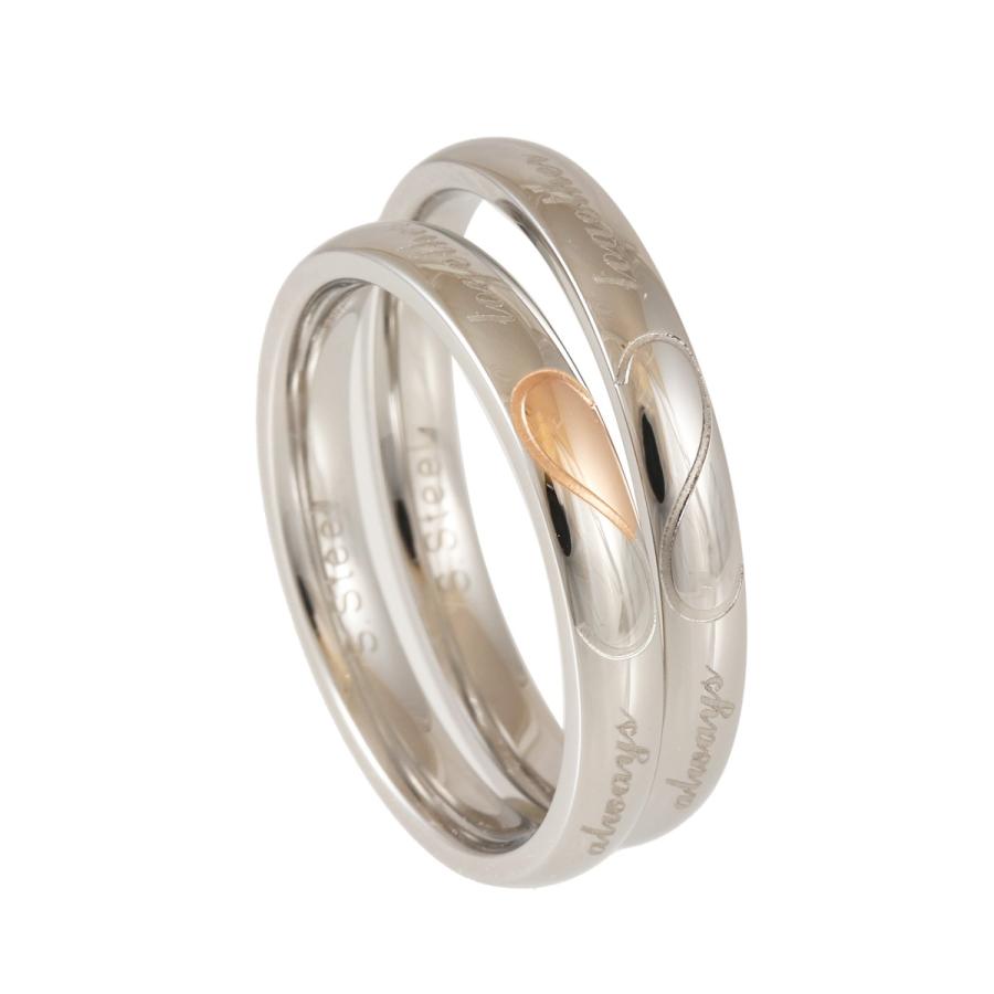 ペア リング 指輪 合わせると ハート レディース メンズ サージカル ステンレス 316L ピンク シルバー 2本 セット シンプル 金属アレルギー対応