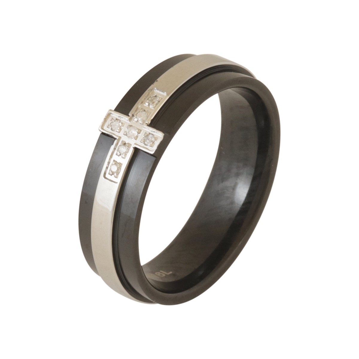 リング 指輪 レディース 316L ステンレス ダイヤモンド 十字架 クロス ブラック コーティング メンズ ケース 付き 金属アレルギー対応