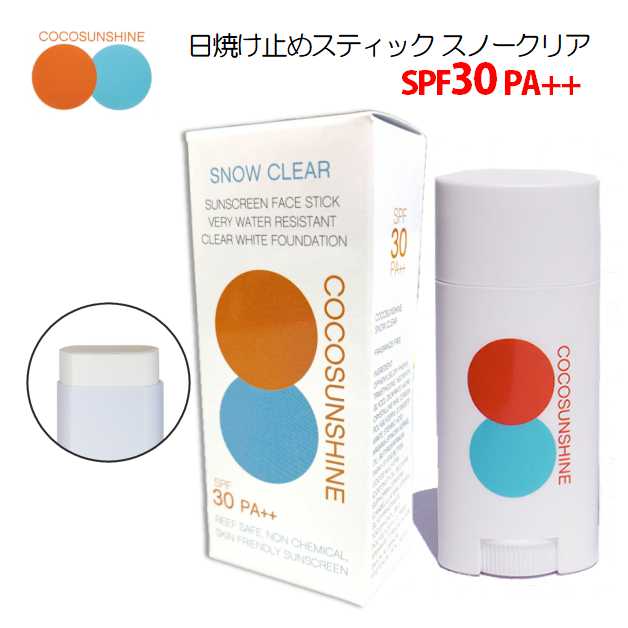 日焼止め 日焼け止め スティック SPF30 紫外線対策 サーフィン ココサンシャイン スノー クリア UVスティック顔用 PA++ COCOSUNSHINE 17g 日焼け対策 コスメ