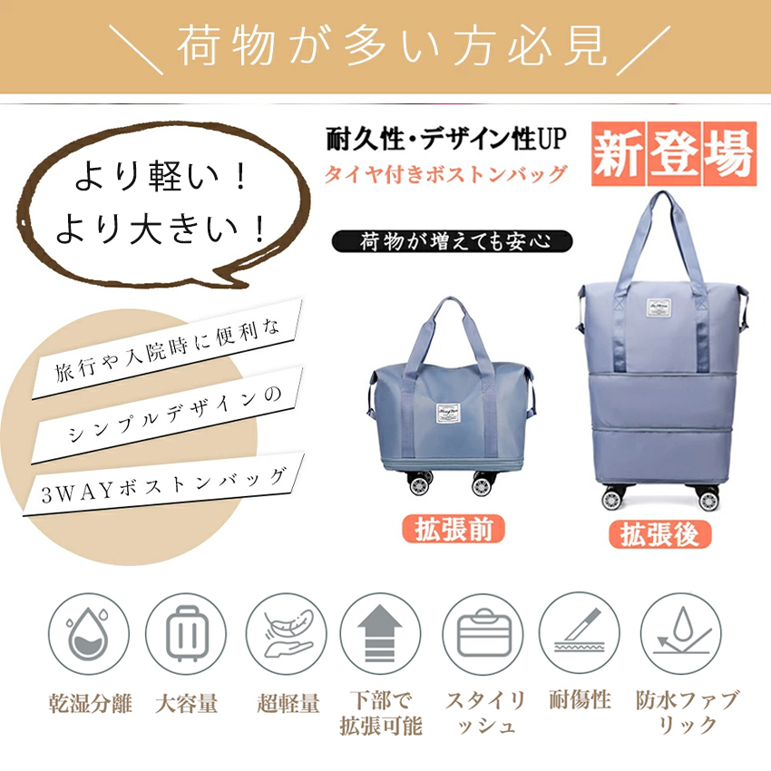 ボストンバッグ キャスター付き キャリーバッグ 折りたたみ 軽量 拡張可 旅行バッグ 3way レディース 乾湿分離 大容量 メンズ 機内持ち込み トートバッグ