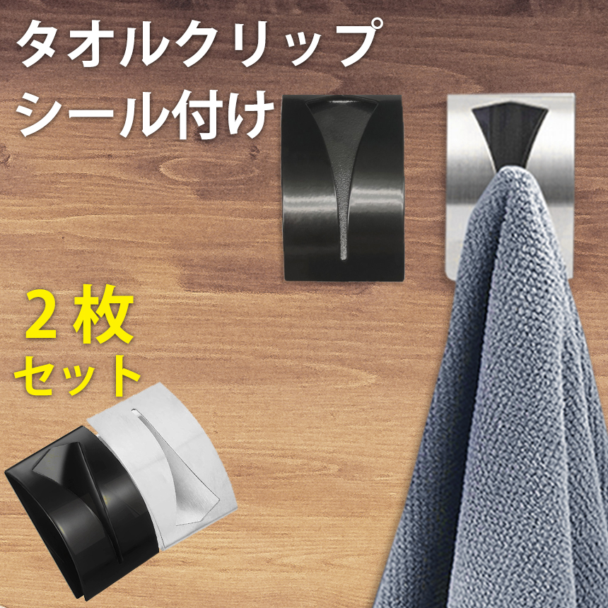 タオルクリップ タオル掛け 壁掛け タオルホルダー お風呂 耐久性 キッチン 穴あけ不要 強力粘着 錆びにくい タオル 2個組