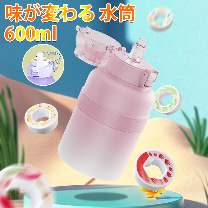 味が変わる 水筒 フレーバーカプセル付き 600ml 水筒 ストロー付き 大容量 水筒 蓋付き ワンタッチ 真空断熱 保温 保冷 ステンレス タンブラー 漏れない