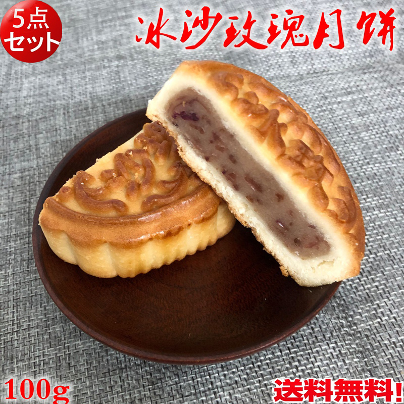 生友 冰沙枚瑰(バラ)月餅 【5点セット】 1個入 中国産 100g 冷凍食品と同梱不可 コンパクト便送料無料(北海道、沖縄除く)