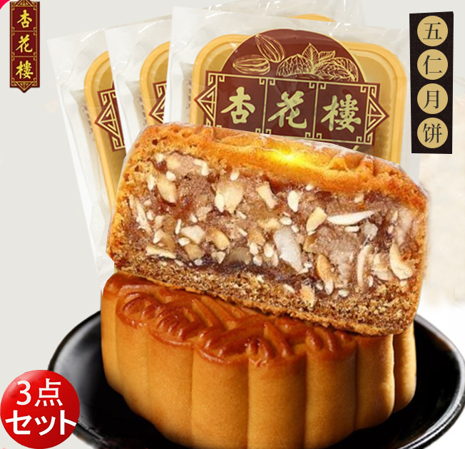月餅 中秋節限定 杏花楼五仁月餅 3点セット クルミ、アーモンドなど木の実入り 100g 人気ブランド 中秋節限定 中国産 中元ギフト