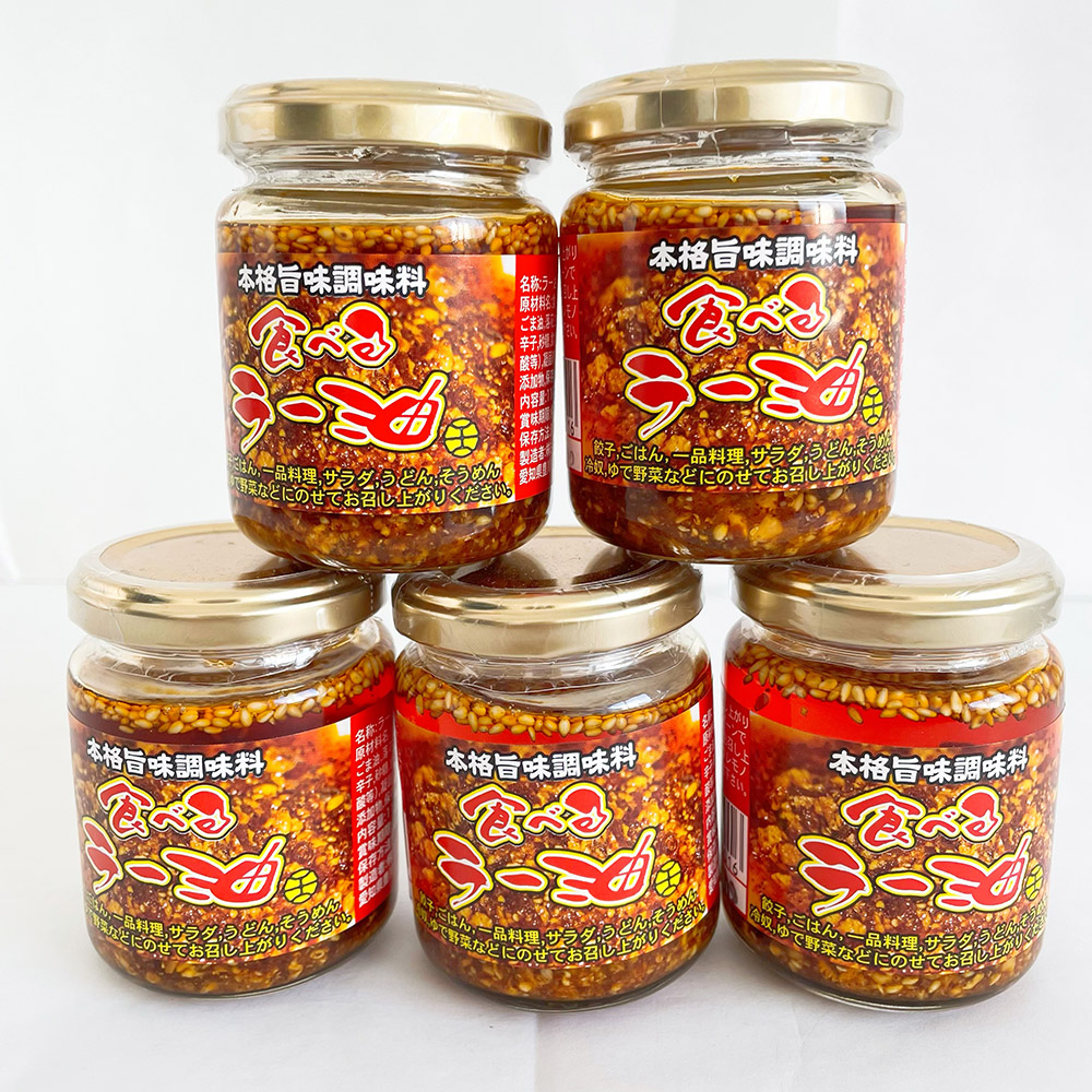 食べるラー油 辣油 110g【5個セット】 日本製 ごまの香とニンニクのさくさくした食感を持つ本格旨味調味料 ご飯が進む 送料無料(北海道、沖縄除く)