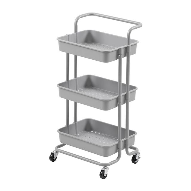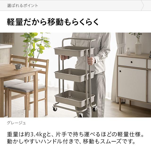 キッチンワゴン ワゴン ハンドル キャスター付き ストッパー付き 天板 スリム キッチン収納棚 ベビーワゴン メッシュ底 スリム3段 おしゃれ