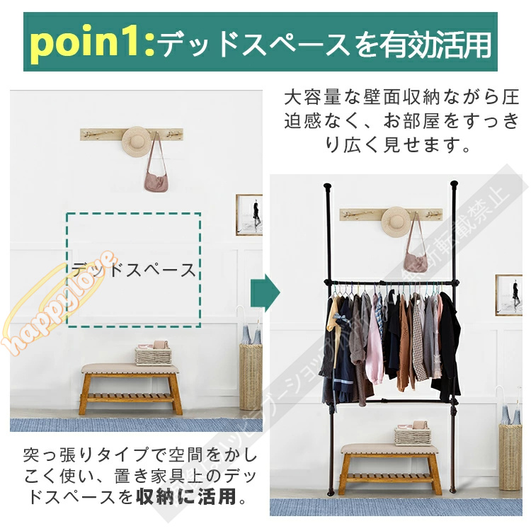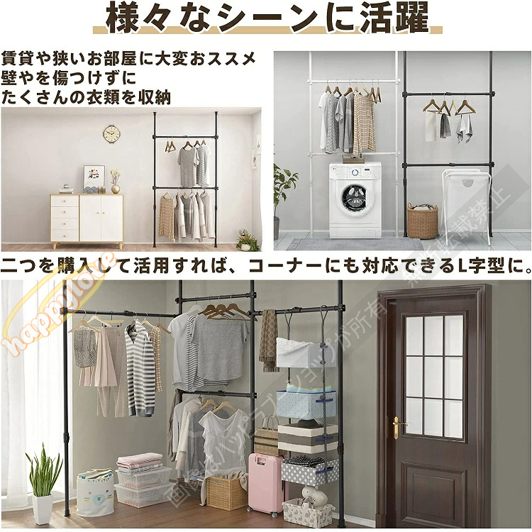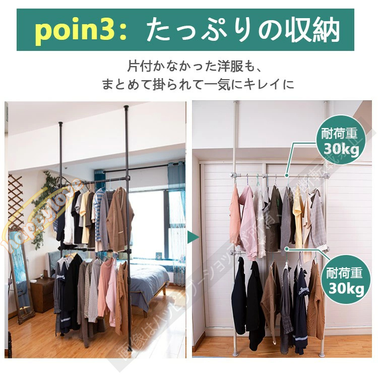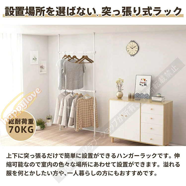 突っ張り式 ハンガーラック つっぱり棒 パイプハンガー 高さ調整 トリプル 省スペース 伸縮式 つっぱりポール 衣類収納 洋服ラック 洋服掛け 組立簡単 収納家具