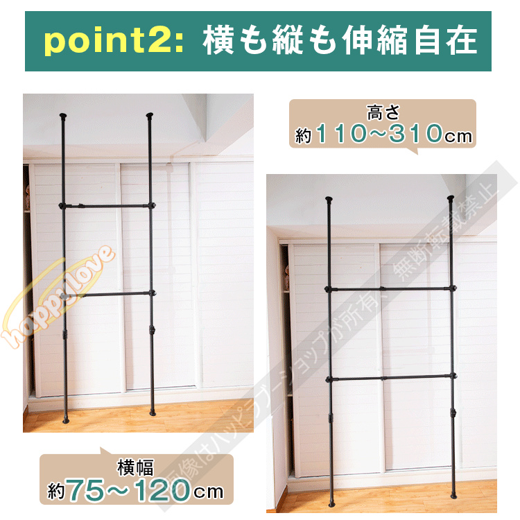 ●横幅伸縮、ハンガーバーの高さもお好みで設定可能